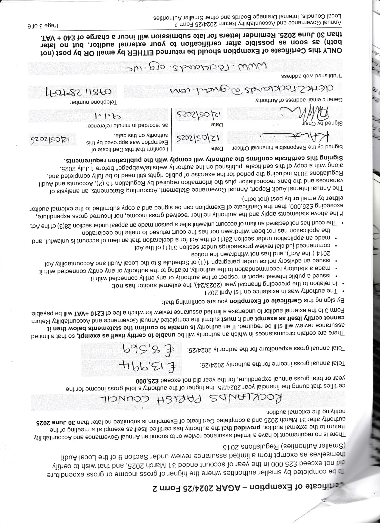 Annual Return (Including Internal Audit and Certificate of Exemption)
