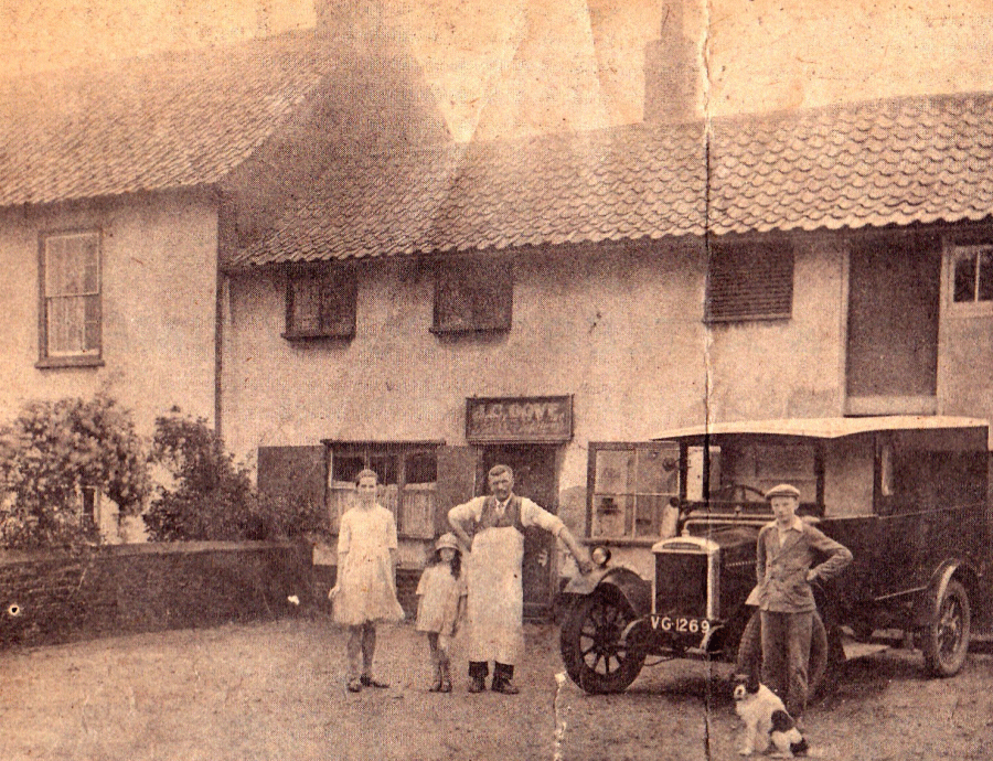 This bakery, which was run by two generations of the Dove family, also sold sausages and meat on a Thursday.The centre photograph dates from about 1932. It later became a more general store, and is now the only shop in the village and the Post Office